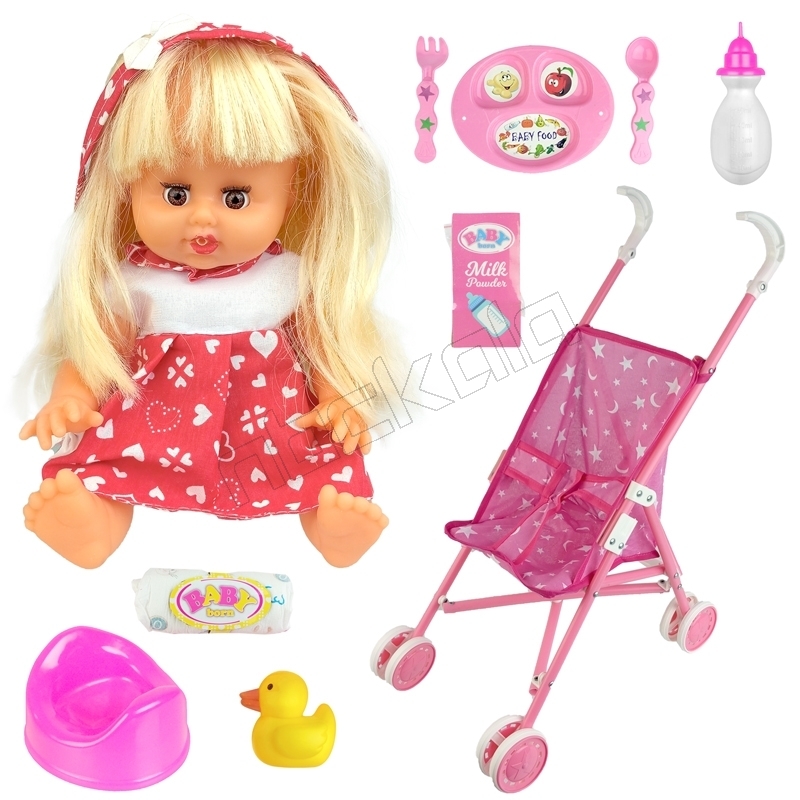 ست عروسک موزیکال بیبی بورن مدل کالسکه دار جیش کن BABY born کد MV655 ارتفاع 33 سانتی متر مجموعه 10 عددی